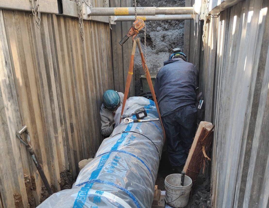 基幹管路布設工事にて800ミリメートル管の布設施工をおこないました。