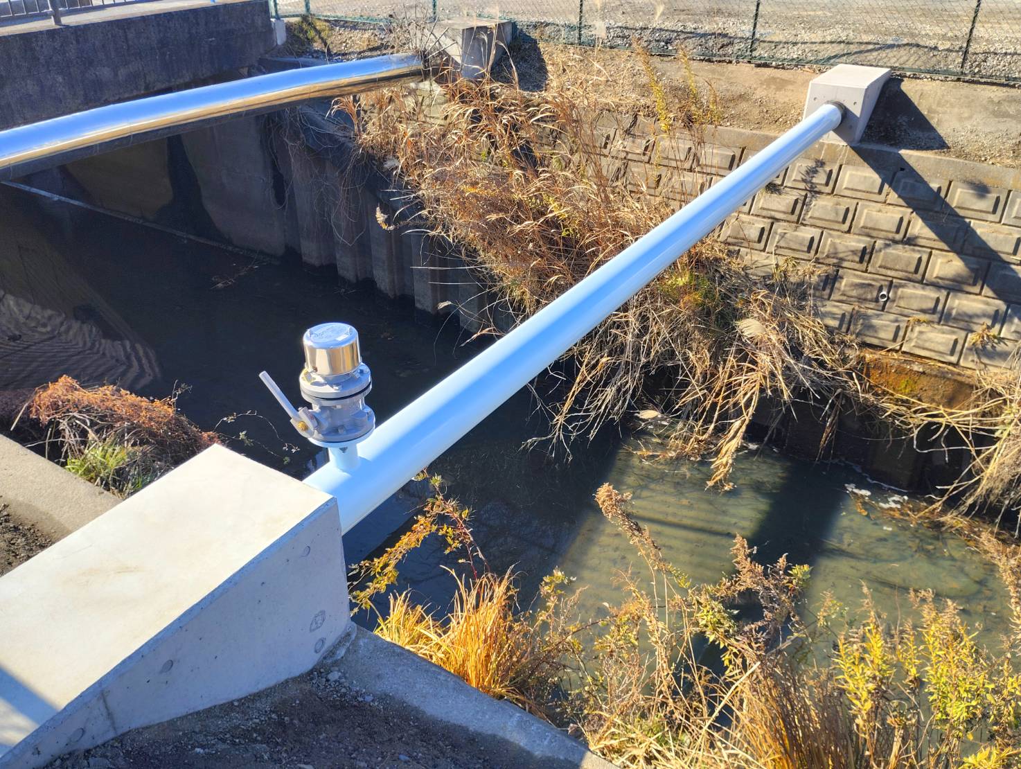 老朽化していた水管橋を撤去し、SUS φ200mmの新しい水管橋を設置しました。安心して長く使っていただけるよう、丁寧に施工しています。